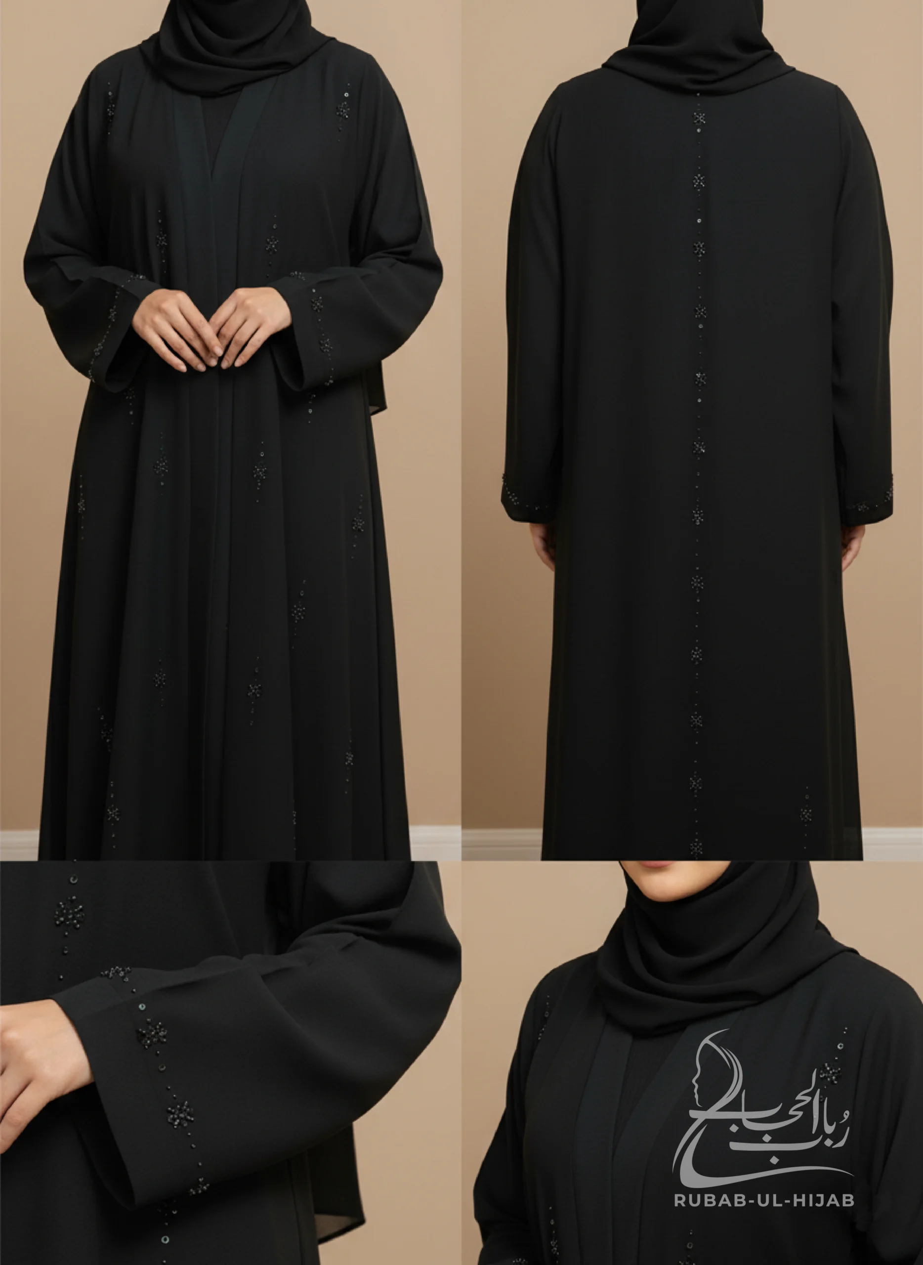 The garment is crafted from premium Zoom Nida fabric, celebrated for its luxurious feel and exceptional durability. The signature krinkle texture adds a subtle, fascinating dimension and movement to the modest wear, making this open-front abaya perfect for both special occasions and elevated daily style.